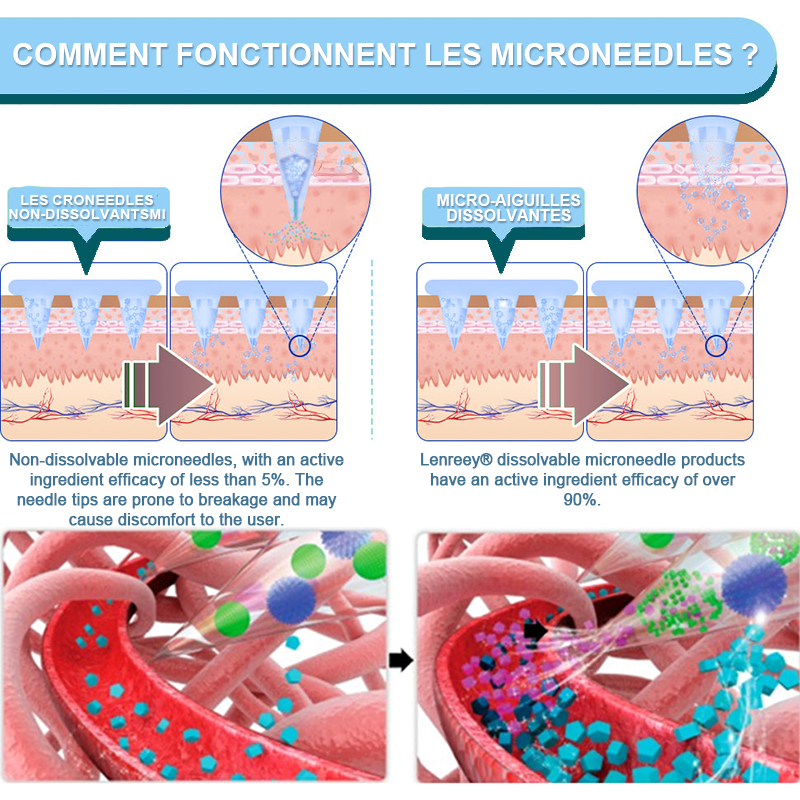 Each needle is 0.27mm long. just 1/7th the thickness of a hair. and is made from dissolvable medication. These micro-needles are precision-engineered using cutting-edge manufacturing techniques to ensure a seamless. pain-free experience while effectively delivering the active ingredients directly into the skin.